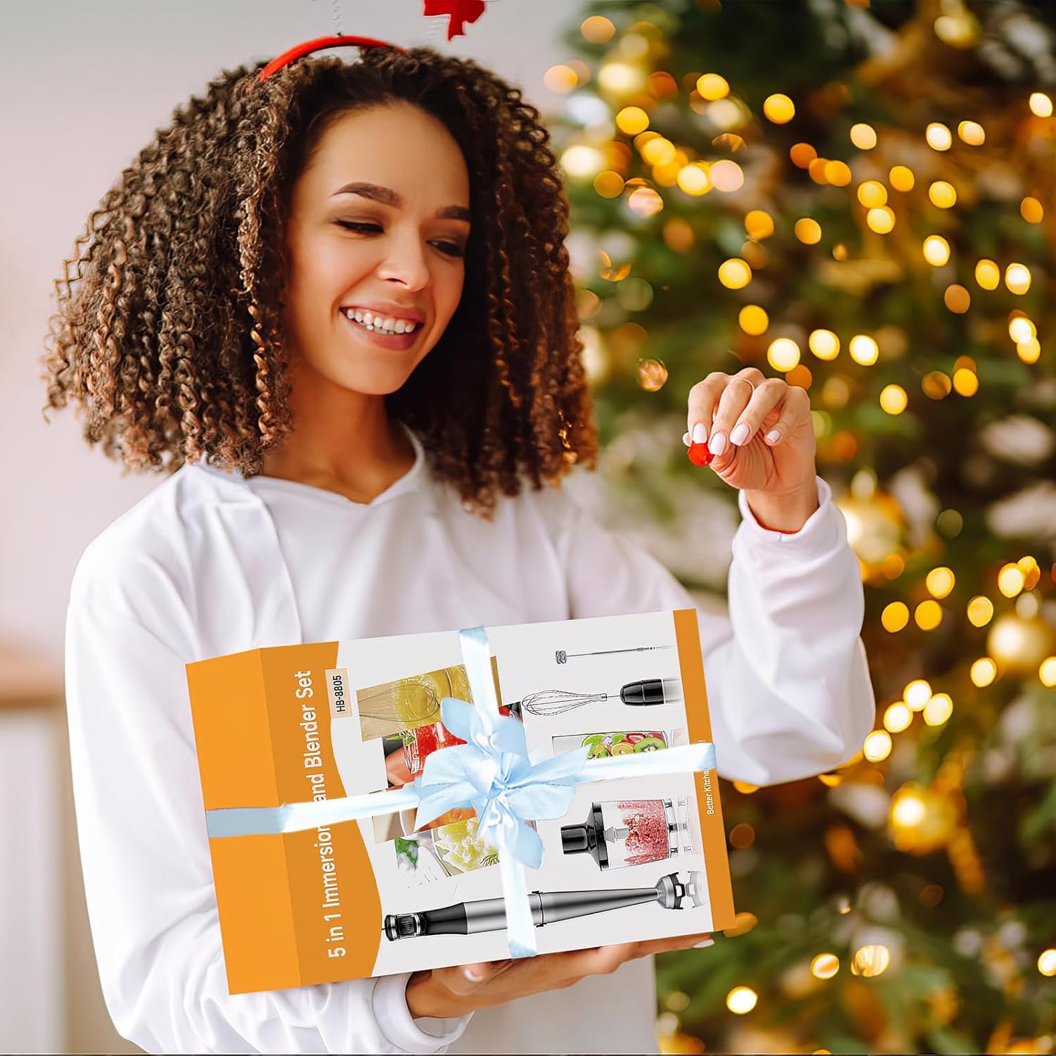 Immersion Blender Handheld Corded Hand Blenders Set 1100W, Trigger Variable Speed 5 in 1 Stick Emulsifier with Chopper, Whisk and Frother for Soup, Baby Food and Smoothies