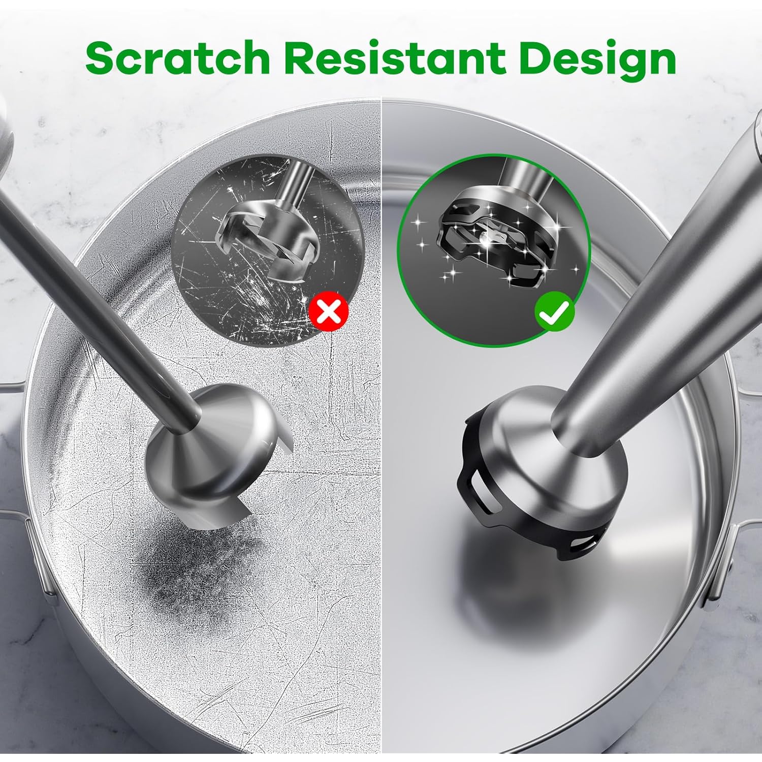 - Effortless Clean-Up, Scratch-Free: Features a unique food-grade nylon blade guard designed to minimize suction, preventing scratches on your pots and pans and keeping splashes at bay for a cleaner kitchen and hassle-free clean-up.