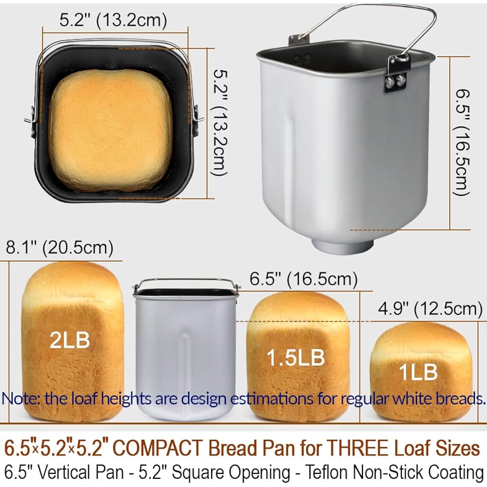 - UNIQUE 1-PRESS BREAD MAKING – All your settings are saved for the next use, including Menu Selection / Loaf Size / Crust Color for a preset menu and your own HOME MADE menu settings. – It becomes 1-PRESS operation if you use the same recipe the next time: simply add the ingredients and press the START button. – 3 Loaf Sizes (2LB 1.5LB 1LB), 3 Crust Colors (Dark / Medium / Light), 15-Hour Delay Timer, 1-Hour Keep Warm, 15-Minute Power Interruption Recovery, ADD-NUTS / REMOVE-PADDLE Alarms, etc.